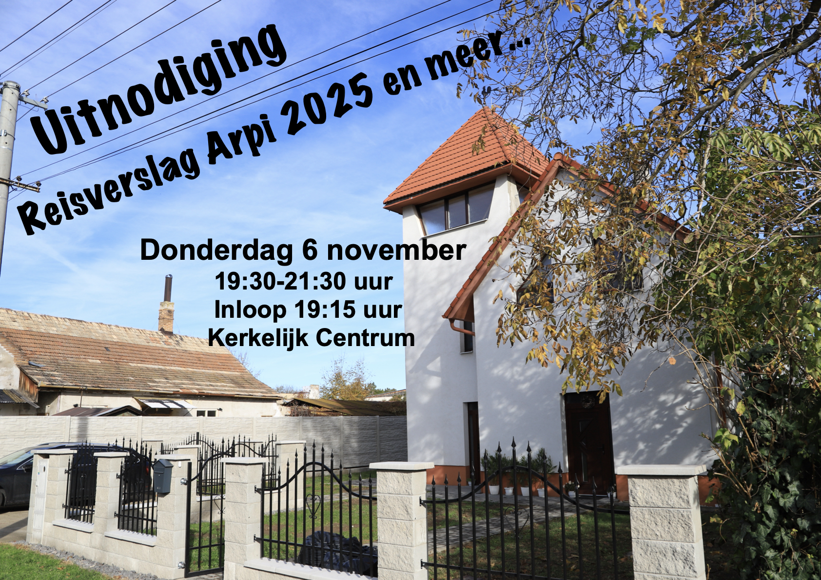 Hierbij nodigen wij (werkgroep Arpi) jullie uit voor een gezellige avond over de belevenissen die dit jaar waren bij onze zustergemeente in Orozska Slowakije en kijken we vooruit naar onze toekomst ideeën.